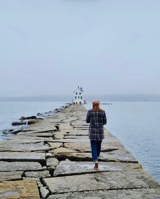 As we entered into Maine, my wardrobe aesthetic changed slightly as it was prior in Massachusetts. When I think of Maine, I imagine lighthouses, lobster and fishing villages, and rugged coasts. With that inspiration, I packed fisherman sweaters and caps, rugged boots, and lots of layers. My color theme for Maine was utilizing blues, yellows, whites, and grays. For Kennebunkport, I wore a mustard-colored corduroy jacket over a white turtleneck and lighter washed denim. I added my fisherman cap for a nautical touch. The next day traveling from Kennebunkport to Bar Harbor, I wore a pair of overalls with a taupe turtleneck with a pair of rugged boots and my plaid jacket and cap.