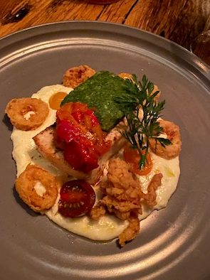 After a pitstop at Allison’s, we walked back to our hotel to get ready and head to dinner at Earth on Hidden Pond. If there is one restaurant that Mike and I would say served us the best meal of our entire trip – Earth on Hidden Pond takes the crown. Earth on Hidden Pond is a farm-to-fork eatery, and it’s one of the best restaurants I’ve ever dined at in my entire life. Earth is a fine dining establishment so the prices of the entrees are more expensive, but the quality of the food is impeccable! I ate swordfish for the first time and it was delicious! The atmosphere was even inviting – it contained natural décor indoors with a dramatic glow of candlelight as you overlook the pond where there were intimate bonfires for guests.